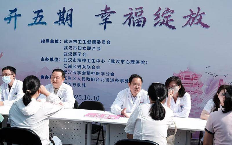 10月10日,武汉市妇女联合会、武汉市精神卫生中心(武汉市心理医院)在武汉万象城开展“花开五期 幸福绽放”女性心理健康义诊活动。